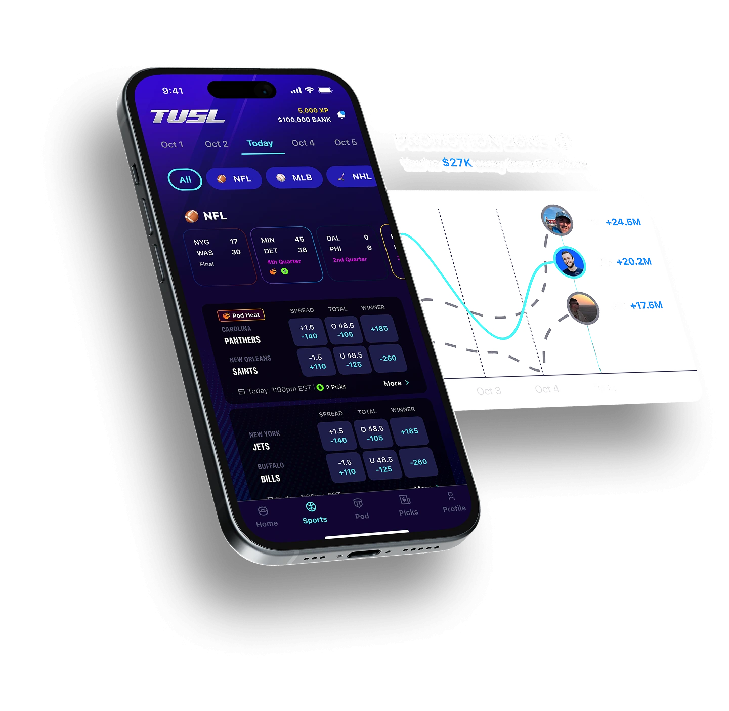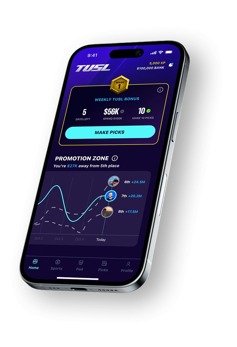 Make 10 picks per week and play through a $100K virtual bankroll, earn an XP multiplier